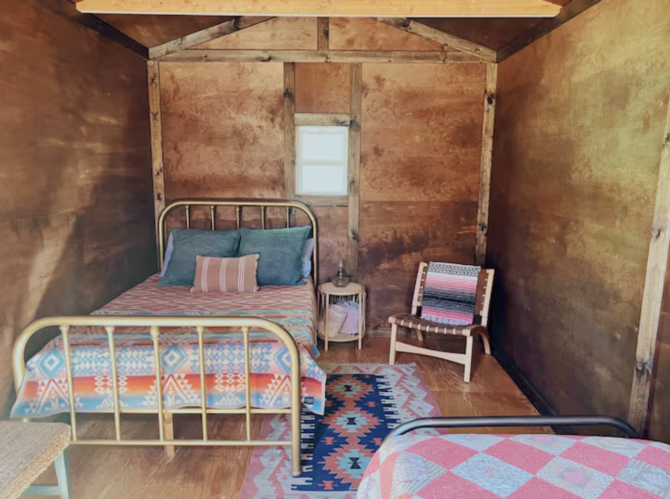Unplug and unwind in our cozy, solar-powered cabin featuring a full and twin bed, handmade furnishings, a composting toilet, and an outdoor shower.